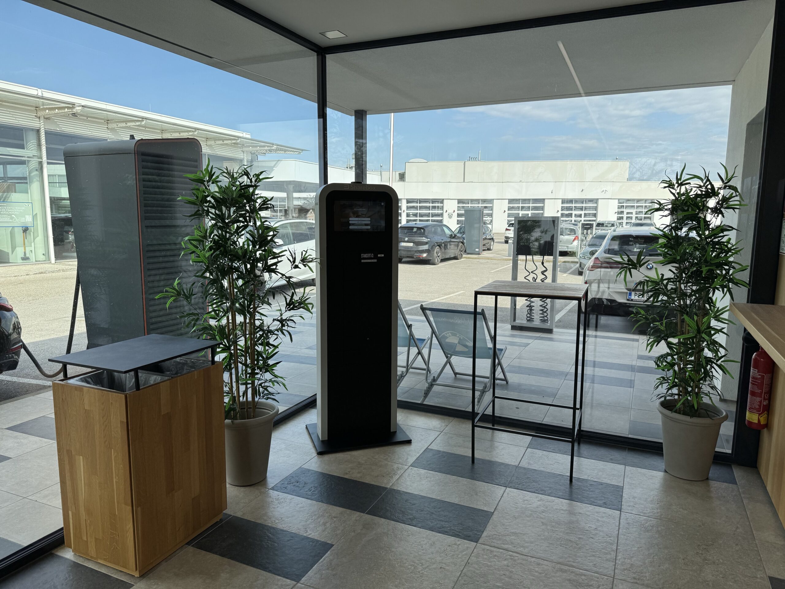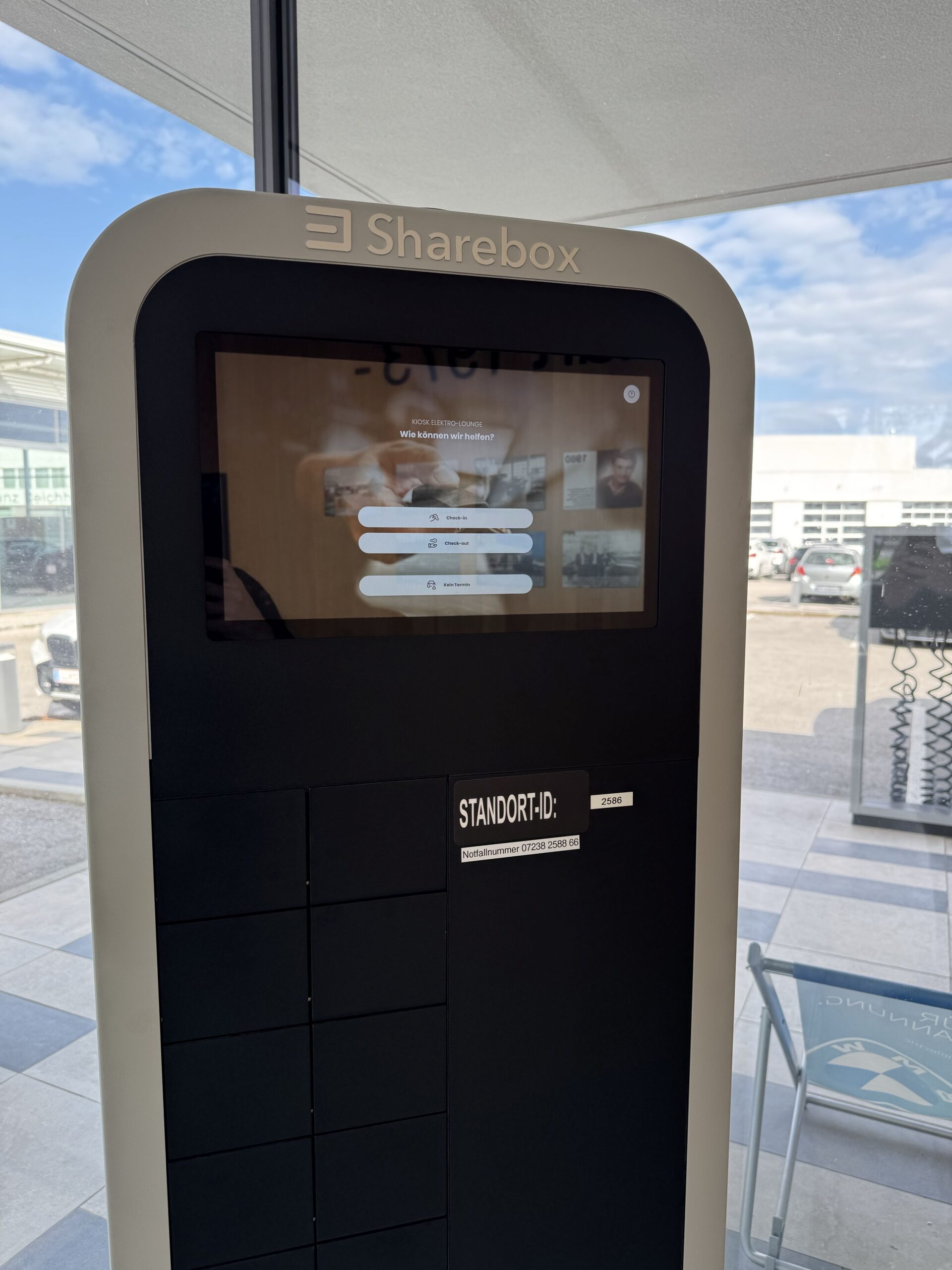 Mit dem Sharebox-Schlüsseltresor in unserer Elektro-Lounge bieten wir unseren Kundinnen und Kunden 24/7 – völlig wetter- und zeitunabhängig – die Möglichkeit, ihren Fahrzeugschlüssel abzuholen oder abzugeben.
